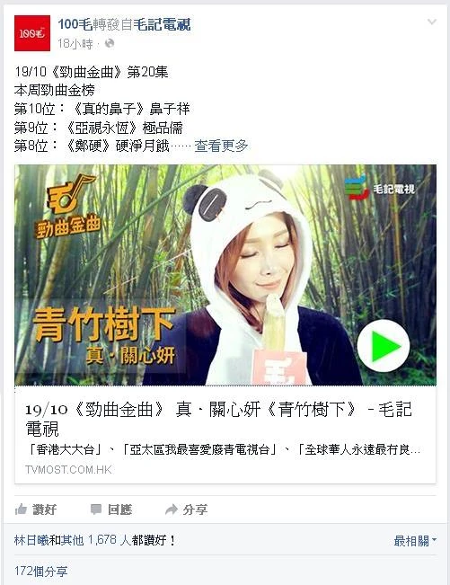 《青竹樹下》,2015年毛記電視《勁曲金曲》出品,改編自張敬軒主唱的《櫻花樹下》,於2015年10月19日推出,並邀得歌手關心妍在毛記電視《勁曲金曲》節目中演唱。