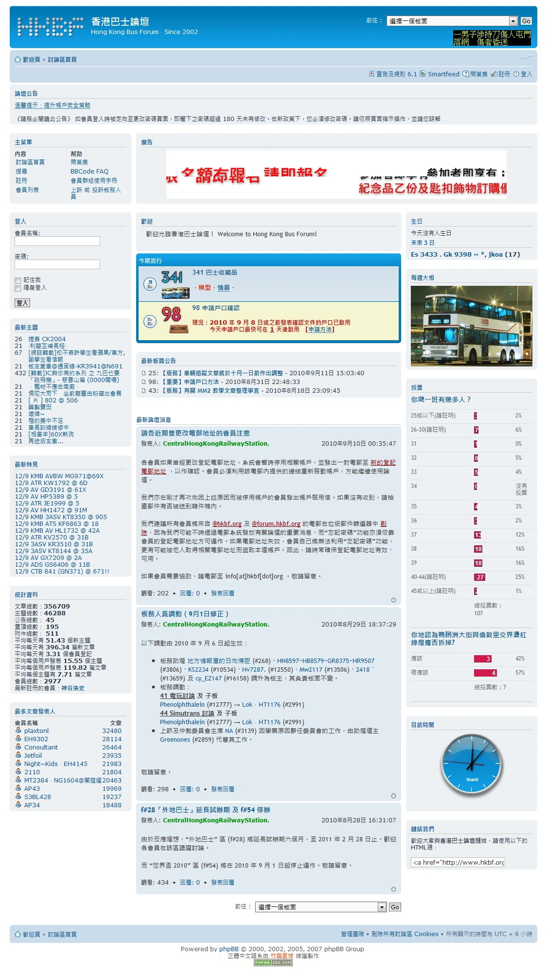 - ↑ 香港巴士論壇:論壇間歇性未能連接至伺服器 (9.7.2010 第 2 次更新)