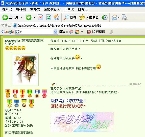 而壇主庭院深深深幾許更自稱一共有十多個子戶來進行這種「宣傳」: