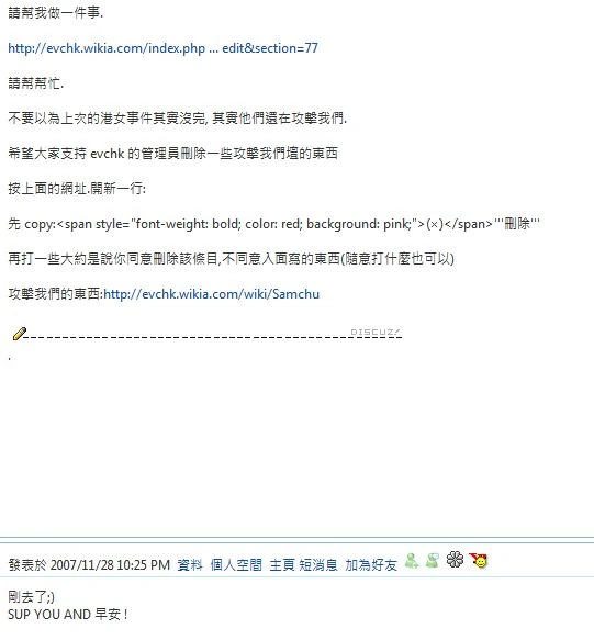 - 不要逃避現實吧!找個知情人事又唔肯!留言不留名,有意抺黑?-Andy0116 14:24 2007年十一月28日 (UTC)