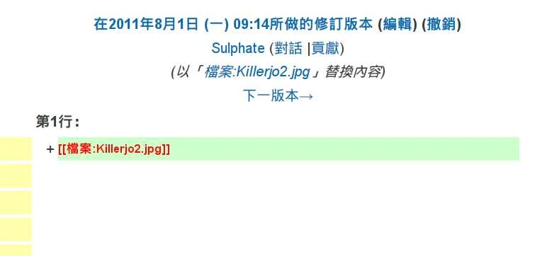 - 原因:我不希望Wikia「選擇性執法」,但有關圖片為改圖,原圖版權屬於原作者,在未經作者同意下衍生作品然後再發佈,希望大家討論一下應否刪除。--湯米‧提思 2011年10月22日 (六) 05:12 (UTC)