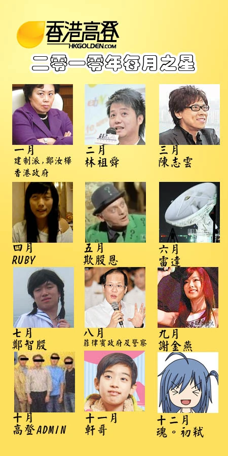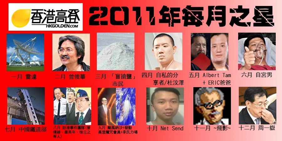 9月 劉江華 現實人物 立法會選舉落敗,網民大事慶祝。 詳見高登2012年9月之星選舉