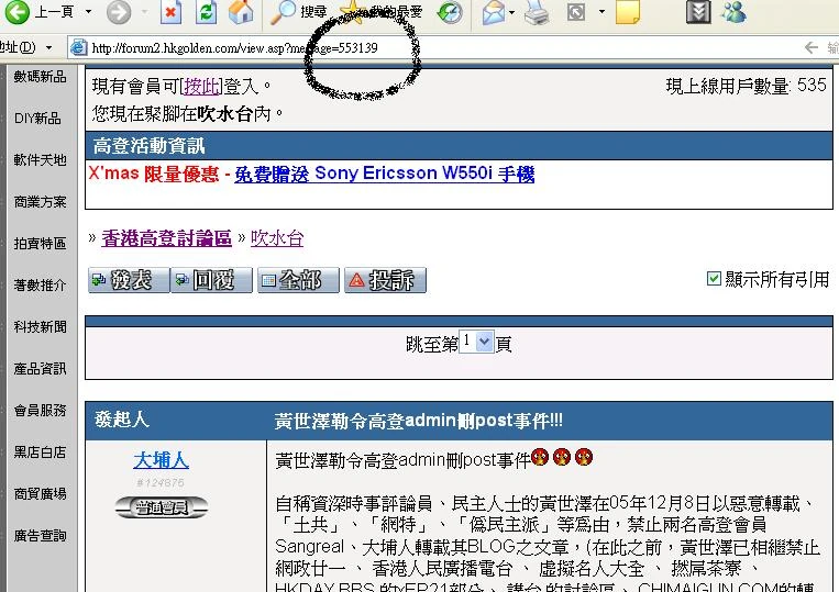 高登admin刪除討論黃世澤的討論帖