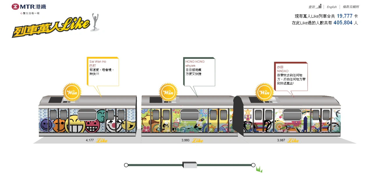 - ↑ 高登公告:港鐵「列車萬人like」比賽,2011年4月20日。