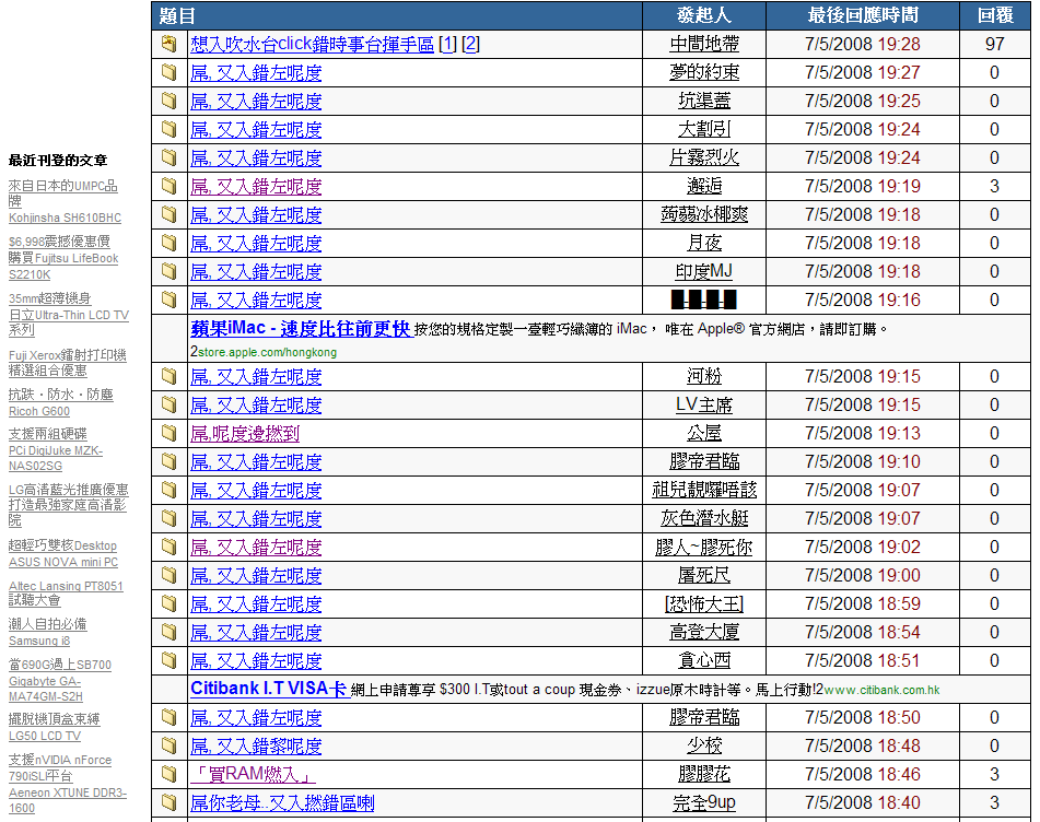 - ↑ 高登:機械式scroll到最底, 入左'時事台'揮手區