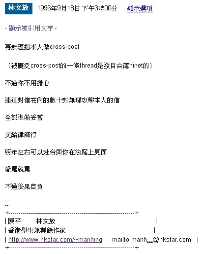 - 林文放網上真跡(1996年2月至1997年10月)