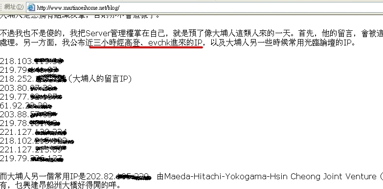 - ↑ 16/4黃世澤blog、「經evchk進入本blog的醜陋人士IP名單」