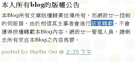 - ↑ 黃世澤blog的「版權政策」
