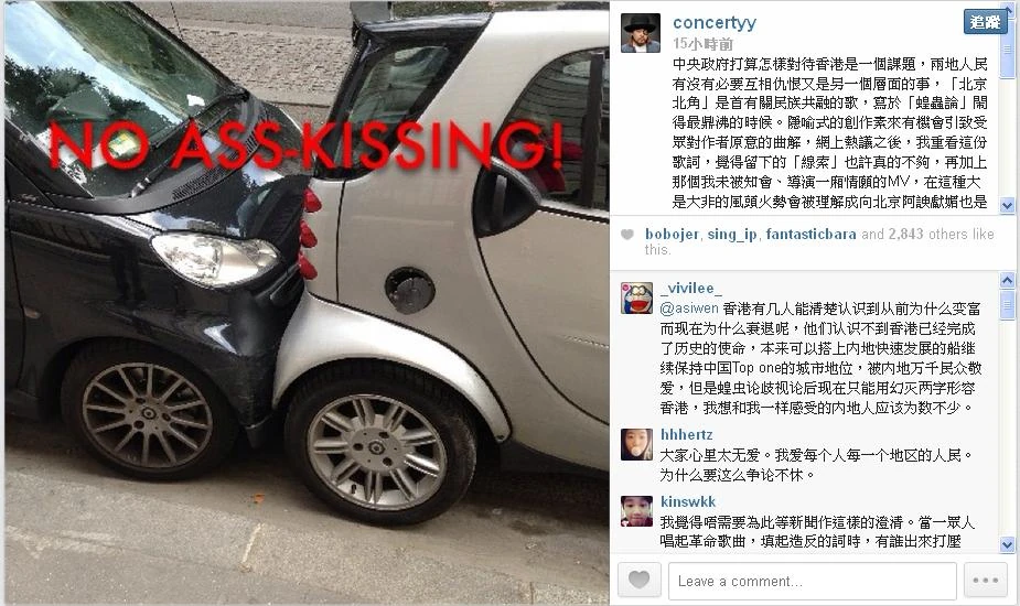 - ↑ concertyy的instagram:中央政府打算怎樣對待香港是一個課題,兩地人民有沒有必要互相仇恨又是另一個層面的事...,2014年7月3日
