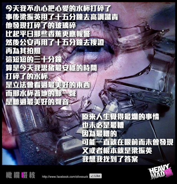 - ↑ 主場新聞:【答問大會】梁振英被擲玻璃杯 特首辦報警,2014年7月3日