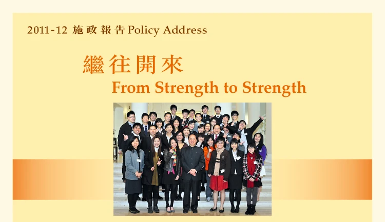 《2011至2012年度施政報告》在2011年10月12日推出,為行政長官曾蔭權任內最後一份施政報告。有關的《施政報告》以淡黃色作主色,及以「繼往開來」為主題。