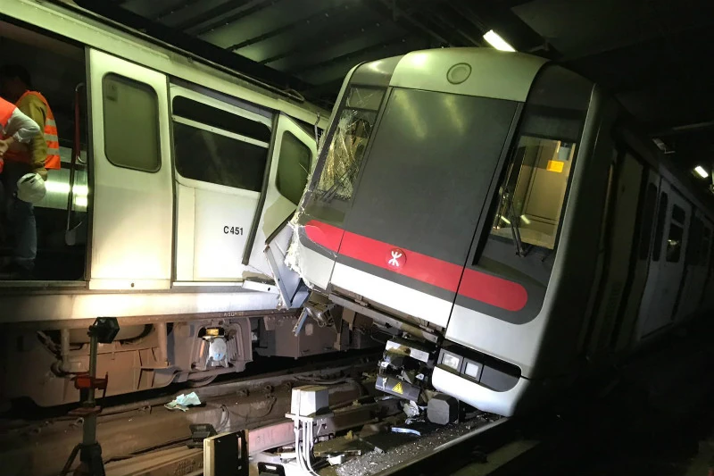 2019年3月18日凌晨,港鐵為荃灣綫測試新信號系統。至凌晨3時左右,當時正模擬主系統及副系統無法如常運作下,轉用後備系統,期間一列從中環駛往金鐘的列車,駛入了兩站間的交叉形「渡線」範圍,但系統同時讓另一輛從金鐘站駛往中環站的列車駛入渡線範圍。最終該列車攔腰撞向往金鐘列車的第三至第四卡位置,列車嚴重損毁,其中一列車上有兩個轉向架偏離路軌,軌道旁有設備損毁,往中環站列車的車長右膝受輕傷送院。意外為港鐵通車40年來首次有行駛中列車相撞。[1][2]