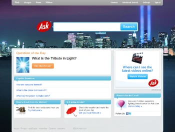 Ask.com除可搜尋新聞、相片、網頁、影片外,還設有地圖和問答,網站除提供Wiki Answers、Yahoo!Answers的問答搜尋之外,還有不同網站Q&A的問答可供搜索。