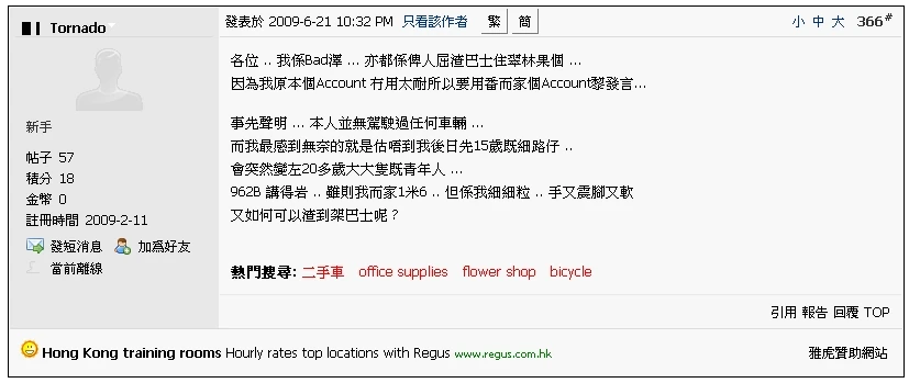 2009年6月,網上流傳一段影片,顯示一名青年深夜時分,在旺角東港鐵站巴士總站內,駕駛雙層巴士。有網民指「Bad澤」牽涉其中,但「Bad澤」已否認有關傳聞。