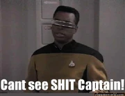Cant see SHIT Captain的原圖,源自ebaumsworld.com Cant see SHIT Captain,語出ebaumsworld.com,形容一幅貼在網上的圖片因某種原因無法顯示。此語亦用作挖苦因電腦技術問題而無法在論壇貼出圖片的網友。截圖出自外國電視劇《星空奇遇記︰銀河威龍》(Star Trek: The Next Generation)的劇照。 衍生作品 綠壩軟件改圖:我看不到屎cant see shit在圖片冊中增加圖片 參見 高登常用詞彙 硬碟上網大法 Cant see SHIT Captain是一個小作品。你可以通過編輯或修訂擴充其內容。 分類: 小作品 金句 圖片 除非另有註明,否則社區內容均使用CC-BY-SA授權條款。