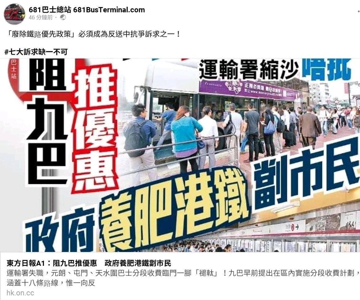 eric278經常把反修例人士的「五大訴求」騎劫成「七大訴求」,胡亂把廢除鐵路優先政策的訴求包含至其中,被指是對示威者不尊重
