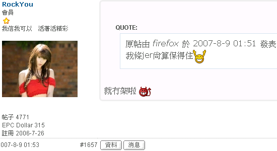 人如其名,Firefox打手團成立人之一。Intel打手團其中一名成員,積極推廣Pentium D805。曾為雲尼觀音兵,曾開post並推到2百多頁,更為一代水王,後來知道左雲尼係人妖,所以表示唔再拜佢做觀音。