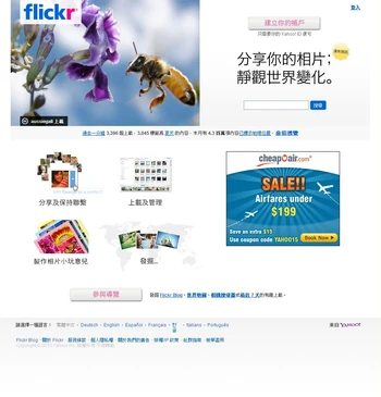 Flickr 目前支援多國語言,包括繁體中文及英文。