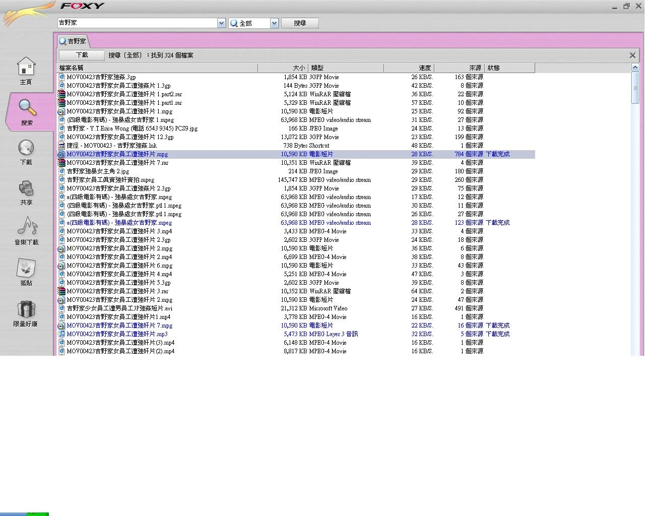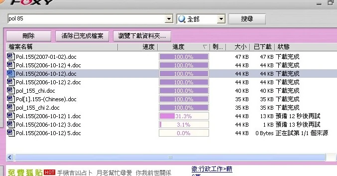 網民利用Foxy下載警方機密時的畫面