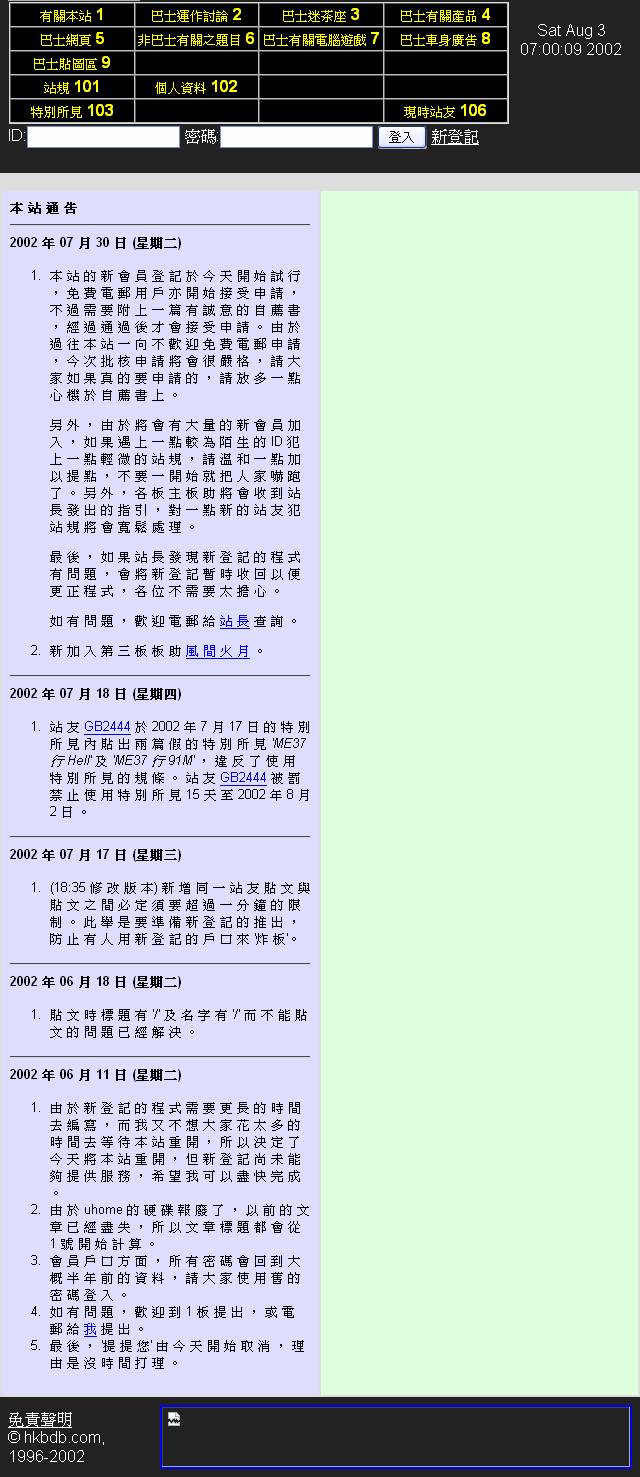 - 2002年HKBDB站規(Web Archive備份)
