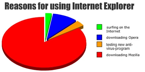 一些外國網民更創作了一個名為《使用IE的原因》圖表,指大部份Internet Explorer使用者都是為了下載Mozilla瀏覽器(Mozilla Firefox的前身),諷刺 Internet Explorer 不受歡迎。
