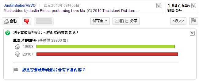 有「外國高登」之稱的 4chan 曾經發起多次行動惡搞 Justin Bieber,例如號召網民到他在 YouTube 的每一首 MV 不停投「不喜歡」。而他在2010年8月發佈的 MV 《Love Me》首次在 YouTube 取得「不喜歡」多過「喜歡」。