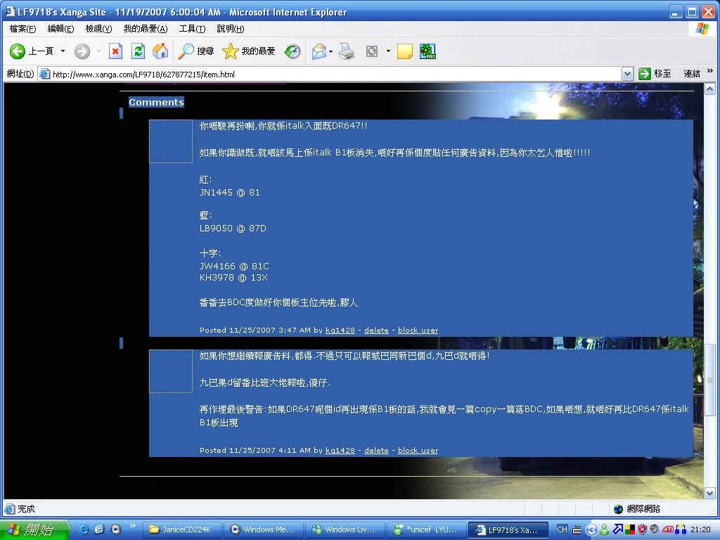 同時又有xanga用家kg1428於KP 6551的xanga張貼恐嚇字句