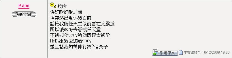 - 1/10/2006 16:21 - 香港高登討論區 - 神已經派左第二個獨生子黎地球