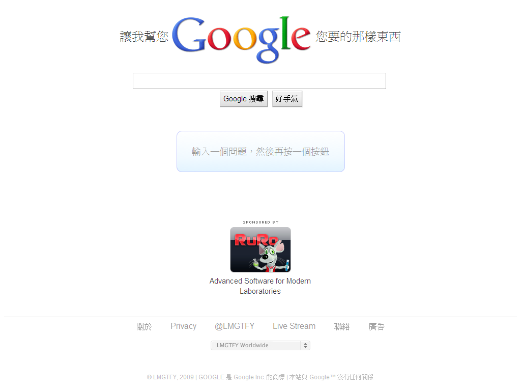 LMGTFY可讓使用者透過Google (後來提供Bing、Yahoo!、Aol等選擇) 去搜尋某樣東西的服務,使用者只要透過由LMGTFY所產生的網址,就能夠以JavaScript方式自動填入搜尋關鍵字,然後產生搜尋結果。