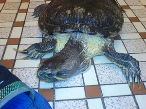 該圖片展示了一殺大龜的屍體,當時龜的屍體非常僵硬,死狀恐怖。