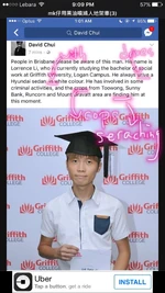 無計可施的David唯有公開其他疑犯的資料及犯罪影片,望有人做替死鬼,後網民找到疑似其好友疑犯Facebook分身,迅速起底,發現其好友於 Ink361的帳號[6],及其就讀於Brisbane Griffith University 。