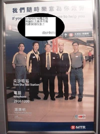 有網民在車站海報上加插設計對白,嘲諷港鐵包庇罔顧乘客安全之車長。