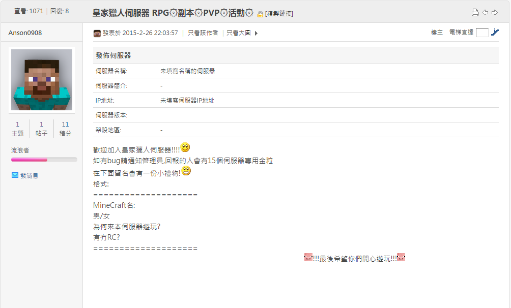 Hugo_bb 見到許多人投訴他後,關掉服務器, 再轉掉服務器地址、重整服務器。重整後又再上 MCHK 討論區, 注册新帳號去發佈服務器。最重要的是Hugo_bb 以為不會再被人投訴,但他仍抱着以錢為先的心態去開服務器,令大家洞悉原來他是 Hugo_bb,並再於 MCHK 討論區發佈他的惡行。