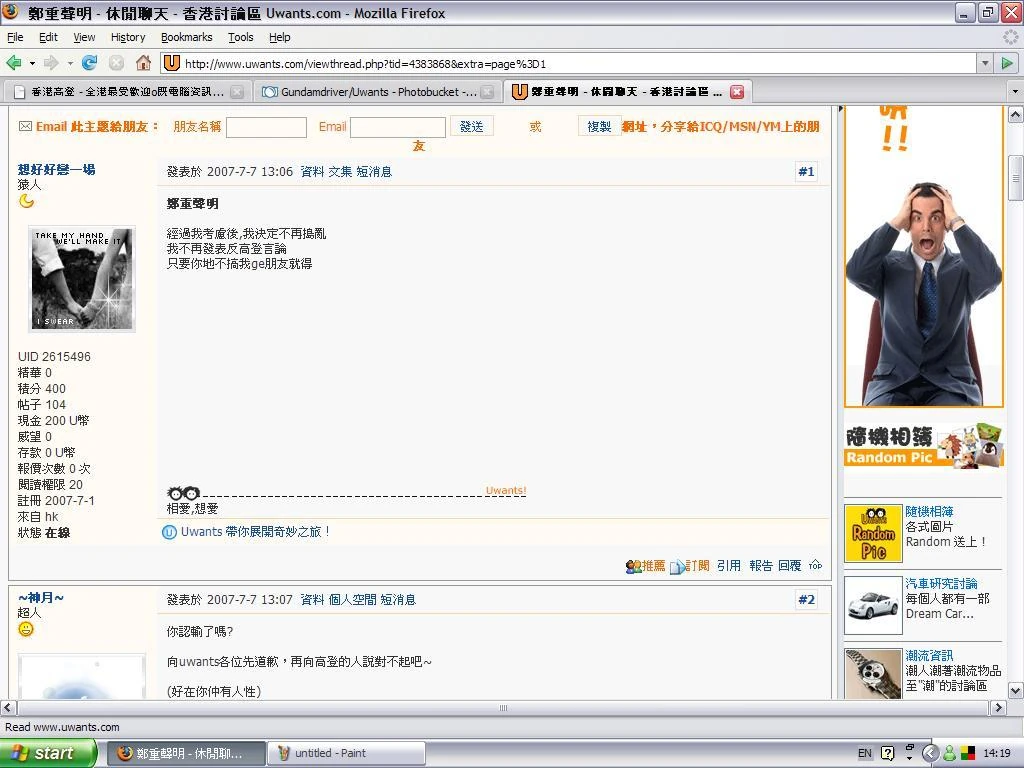 Uwants 會員想好好戀一場於2007-7-6 10:29pm 於Uwants論壇發出主題名為「大家齊齊聲討高登」的檄文(連結),並謂高登破壞香港形象,實為社會垃圾,應受討伐。以下為帖子的內容: