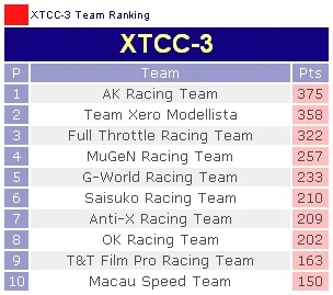 Team Xero Modellista Mugen Racing Team The-1 Racing Team Macau Speed Team Saisuko Racing Team Full Throttle Racing Team OK Racing Team T&TFilm Pro Racing Team AK Racing Team G-World Racing Team Anti-X Racing Team